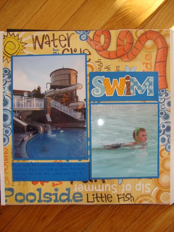 I was cleaning my craft room the other day and came across a few scrapbook pages from our trip to Disney from two years ago. I decided to put the pages in their album; only to discover I had no Disney album from that trip! I have no idea how that happened but after a quick visit to Shutterfly and a few weeks waiting for my photos to come in I am now scrapping Disney like crazy! I put the pictures from this year's trip on hold and am trying to focus on these older pictures. I ordered several 8x10 photographs, a bunch of 5x7's and a lot of 4x6's as well. I started wherever inspiration struck.
